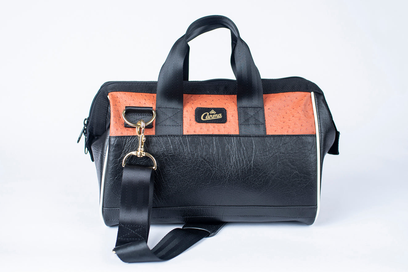 Carma Gearbag in Burnt Orange Ostrich Texture Upcycled Car Trim Remnant